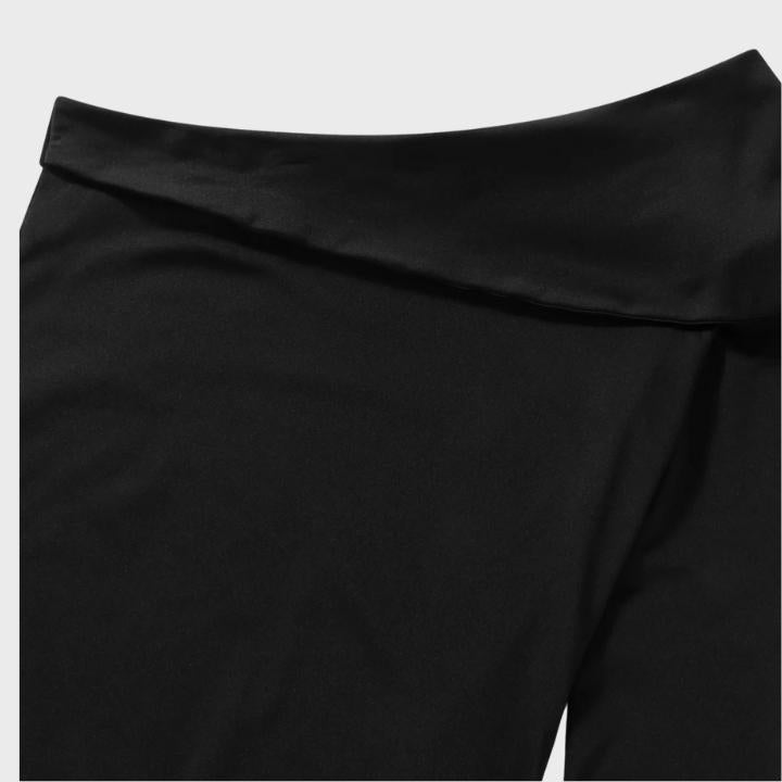 Chic and refined, this black one-shoulder mini dress makes a confident statement for any evening event. Designed in a sleek bodycon silhouette, it highlights your natural shape while maintaining a smooth and polished appearance. The plush feather trim along the hemline adds a soft touch of texture, giving the outfit a luxurious finish.