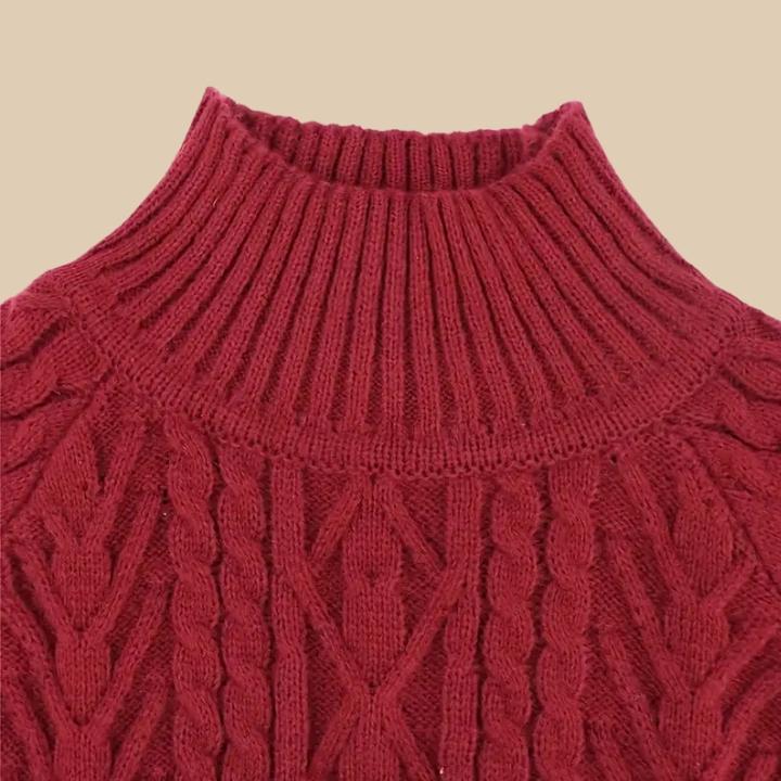 This women’s pullover sweater combines timeless design with a modern relaxed silhouette. The high neck and cable knit detailing create a flattering look that transitions easily from daywear to casual evenings. It adds a sense of comfort and sophistication, making it an effortless addition to your everyday wardrobe. Suitable for cooler seasons, this piece pairs beautifully with jeans or skirts for a refined yet cozy appearance.